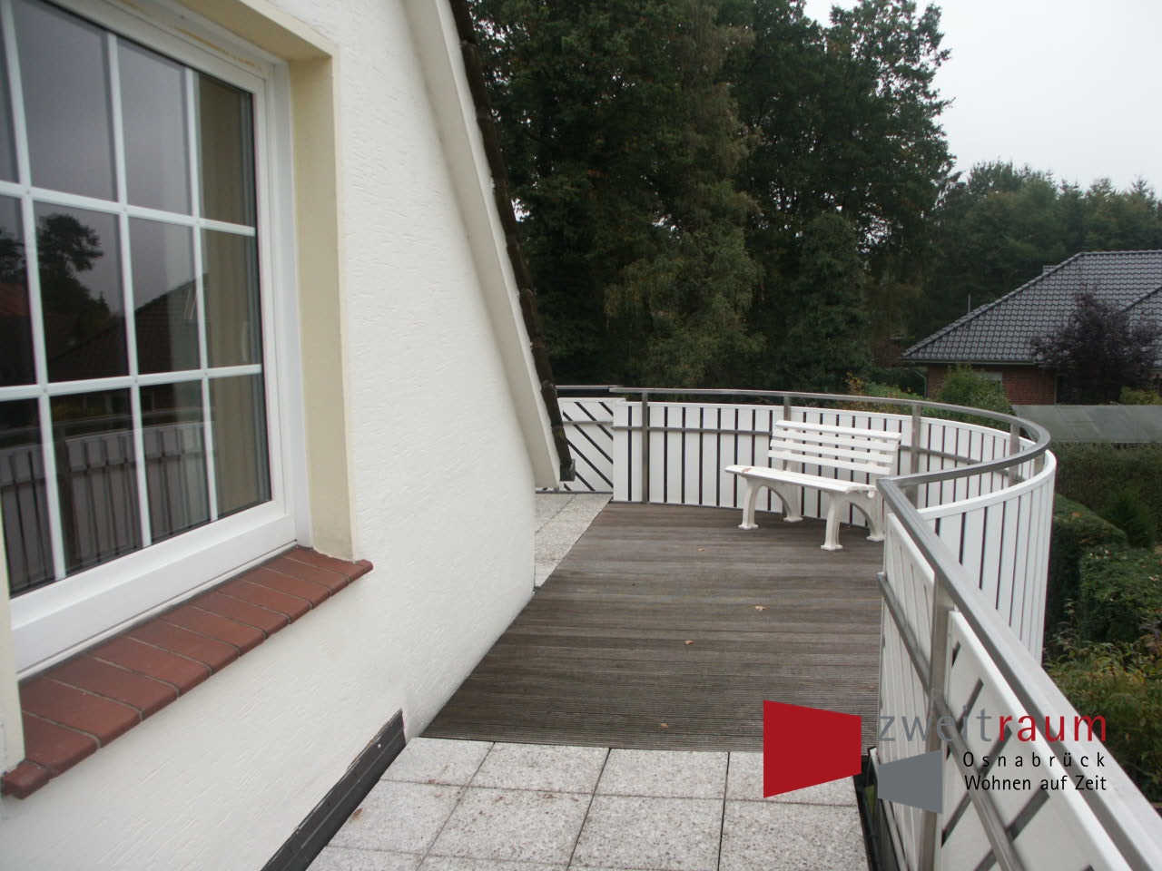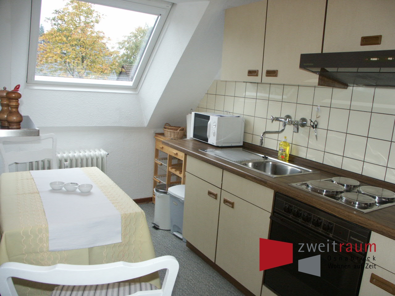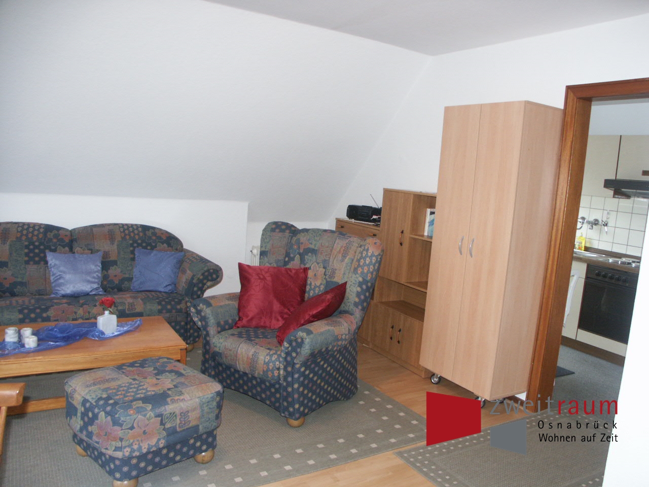 Solide eingerichtete 2-ZKB-Wohnung im Dachgeschoss eines 2-Fam.-Hauses mit sehr schönem, großen Balkon am Ortsrand von Hollage; Wohn-Esszimmer ist mit Essecke, Sofa, Sessel, Schlafcouch, Tisch und Flat-TV mit SAT Anschluss eingerichtet; Schlafzimmer mit komfortablem Doppelbett (180×200), Nachttisch und 4-türigem Kleiderschrank; die Küche ist mit Einbauzeile (Herd, Ofen, Kühlschrank, Spüle, Kaffeemaschine, Toaster, Geschirr, Gläser, Kochutensilien, etc.) und kleinem Esstisch ausgestattet; das Bad ist mit Wanne (mit Duschvorrichtung und Vorhang), Waschbecken und WC; Staubsauger; separater Eingang; gute Parkmöglichkeit vor dem Haus; sehr ruhige Lage; ca. 10 km zur Innenstadt von Osnabrück. Bei 2 Personen zzgl. EUR 100,- Monat. Miete zzgl. Strom.