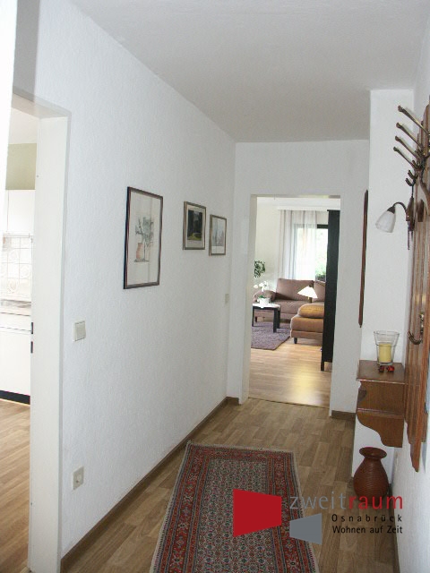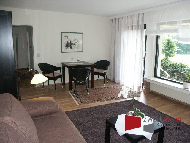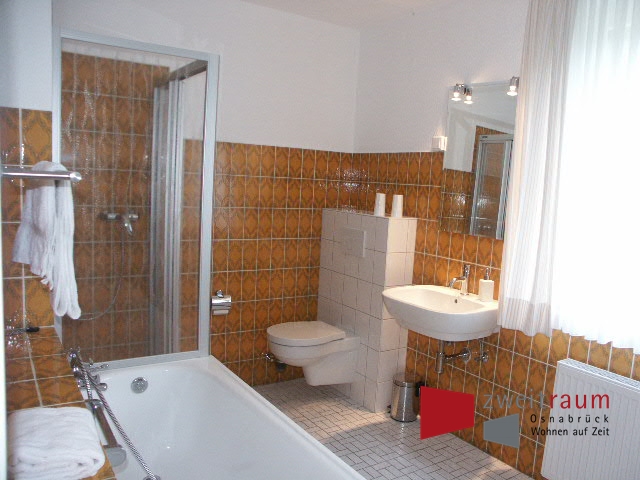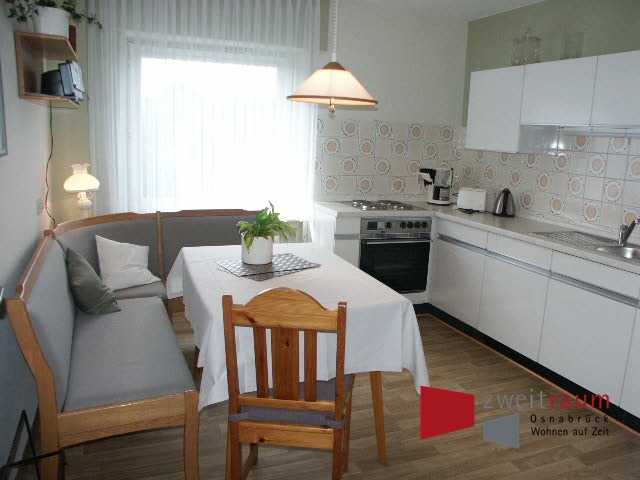 Möblierte 2-Zimmer-Wohnung im Erdgeschoss eines gepflegten 2 Familienhauses in idyllischer Lage von Osnabrück. Der großzügige Wohnraum ist geschmackvoll eingerichtet mit einer Couch, Couchtisch, TV-Bank mit Flachbild-TV , Regalen, Essplatz. Das Schlafzimmer ist ausgestattet mit einem Doppelbett mit Ablagen und einem Kleiderschrank. Die Wohnküche verfügt über eine Einbauküche mit Geschirrspüler, Kühlschrank, Herd, Mikrowelle, Kaffeemaschine, Toaster, Geschirr, Gläser, Kochutensilien, etc. und einem Esstisch mit Stühlen und Eckbank. Das Badezimmer verfügt über eine Dusche und eine Badewanne, Waschbecken, Spiegel und WC. PKW-Stellplatz direkt vor dem Haus. Bettwäsche, Handtücher, Kopfkissen und Bettdecke auf Anfrage möglich. Außerdem steht ein kleiner Kellerraum mit einer Waschmaschine und einem Trockner zur Verfügung. Bei 2 Personen zzgl. EUR 100,- Monat.