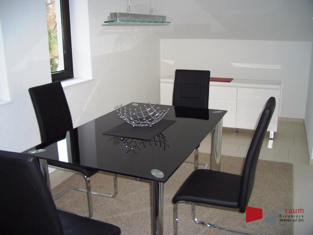 Schlichte Eleganz und hochwertige Ausstattung zeichnen diese lichtdurchflutete, großzügig geschnittene 3-ZKB-Wohnung in einem Haus in bevorzugter Lage von Lüstringen aus; das große Wohnzimmer mit schöner Fensterfront und Tür zum großen Balkon ist modern und geschmackvoll eingerichtet mit Ledersofa, Couchtisch, Lowboard mit Flachbild-Fernseher und Sideboard; der große, nicht einsehbare Balkon verfügt aufgrund der Hanglage über einen herrlichen Blick über das Tal und zum Teutoburger Wald; das schicke Esszimmer ist mit schwarzem Glas-Esstisch, 4 Stühlen und einer Anrichte in weißem Lack ausgestattet; die Küche besticht durch einen schicken Esstisch für 2 Personen und eine moderne, weiße Einbauküche mit Ceran-Kochfeld, Backofen, Kühl-Gefrierschrank, Spüle, Spülmaschine, Mikrowelle und ist komplett ausgestattet mit Kaffeemaschine, Toaster, Geschirr, Gläsern, Koch-Utensilien , Geschirrtüchern, etc.; das neue, moderne Bad verfügt über Waschbecken, Spiegel, WC und Dusch mit Glastüren; zusätzlich steht ein großzügiges, exklusives Gäste-WC zur Verfügung; das große Schlafzimmer mit Fensterfront und eigenem Zugang zum Balkon ist elegant eingerichtet mit einem Spiegeleinbauschrank, einem Doppelbett, Nachttisch, Sessel und einem weißen Sideboard; ein kleiner Eingangsbereich mit Garderobe und Ablage rundet den eleganten Eindruck der Wohnung ab; PKW-Stellplatz ist vorhanden; Internet und Telefon möglich; Bettwäsche und Handtücher liegen bereit; auf Anfrage und Aufpreis auch Reinigungsservice möglich; ideal für 2 Personen (bei 2 Personen zzgl. EUR 100,- Monat); ruhige und gehobene Wohnlage am Stadtrand; gute Autobahn- und Stadtbusanbindung; und Einkaufsmöglichkeiten (ca. 10 Gehminuten) in der Nähe; ca. 5 km zum Zentrum Osnabrück.