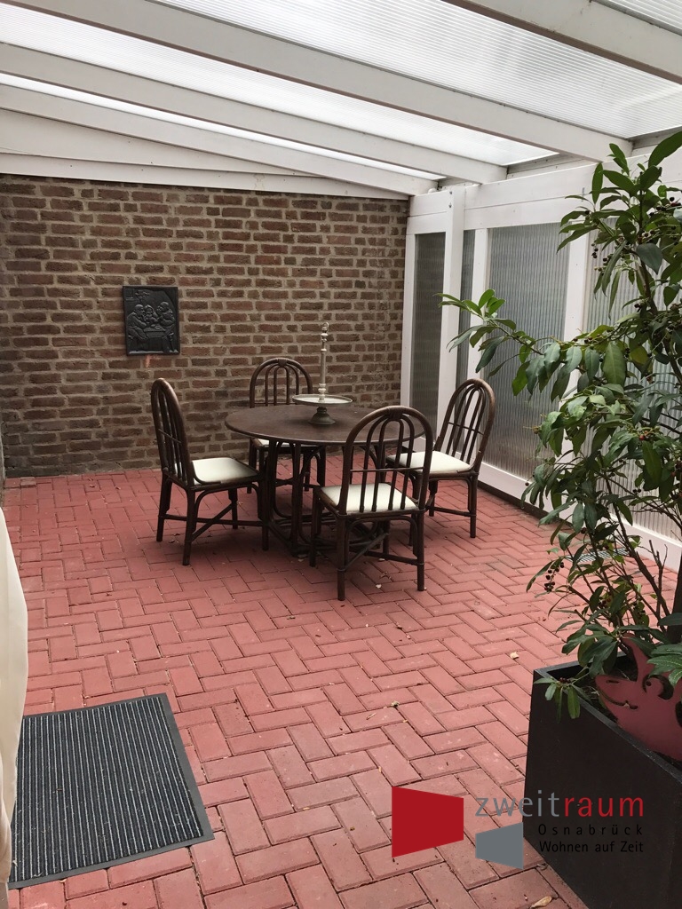 Direkt in der Innenstadt von Rheine gelegene, großzügige Einraumwohnung mit Wintergarten. Die Wohnung ist komplett mit allem ausgestattet, vom Bettzeug über Kaffeemaschine bis zum Geschirrspüler. Zusätzlich ist ein kleiner Abstellraum mit einer Waschmaschine vorhanden. Einmal im Monat kommt eine Reinigungskraft für 2 Std. (zzgl. EUR 30,- Monat). Ein PkW-Stellplatz kann für zzgl. EUR 40,- Monat mit angemietet werden. WLAN auf Anfrage. Miete zzgl. Strom.